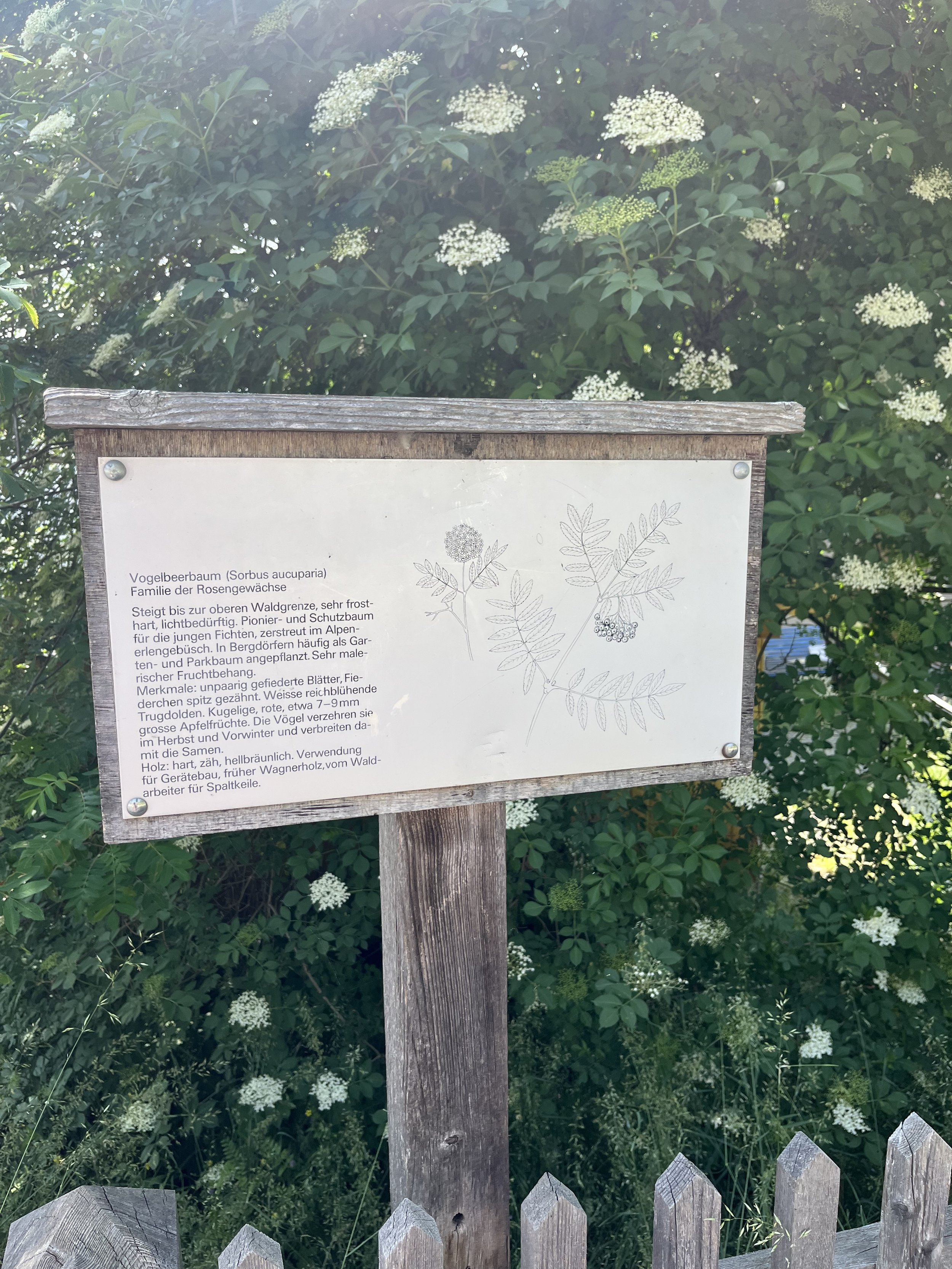 Info over de wilde lijsterbes. Leuk dat er zo veel infobordjes bij Zwitserse planten staan, dit zagen we vaker 😊.